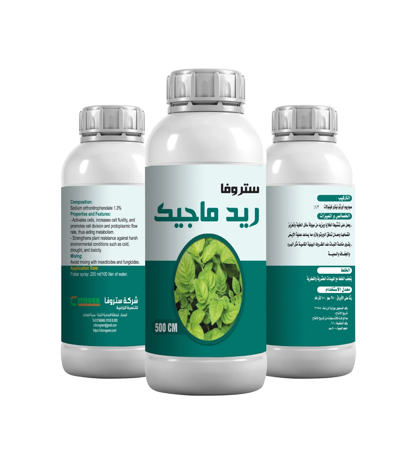 Citrova Red Magic is a plant growth stimulant containing sodium orthonitrophenolate, which activates plant cells, increases cell fluidity, and enhances cell division processes.